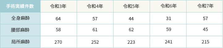 当院では、初代から現院長まで3代共に外科出身であり、開院当初から外科治療が診療に占める割合が比較的多いです。現在は消化器外科が中心となっていますが、一般外科や、血液透析センターが併設されている関係で、シャント作成や狭窄に対する拡張術等の血管外科、乳腺外科、肛門外科、また脳神経外科、泌尿器科の診療も行っています。疾患によってはクリティカルパスを用いて質の高い医療を提供できるように努めています。